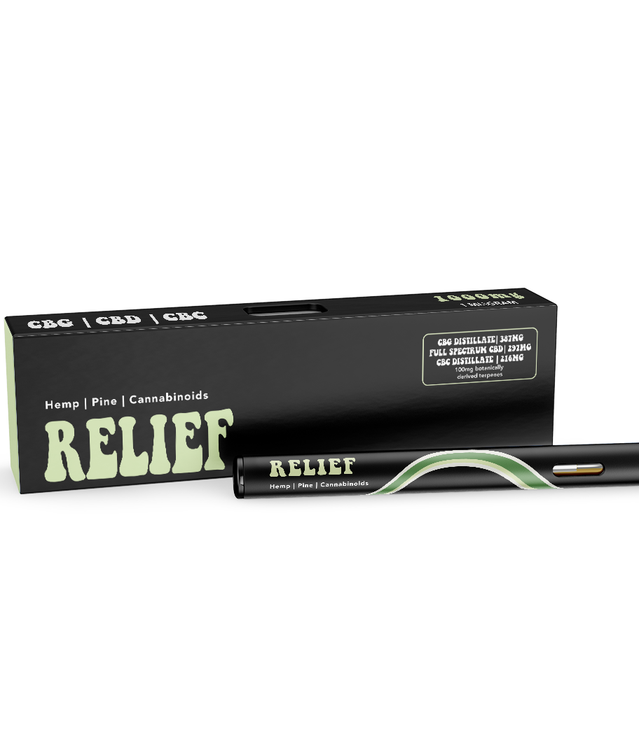 Relief encompasses a truly unique experience through its effects cannabinoid combination. Spotlighting three exceptional non-psychoactive cannabinoids: Full Spectrum CBD, CBG, and CBC distillate. Dive into the natural flavors of hemp and pine This pen is NON-Psychoactive